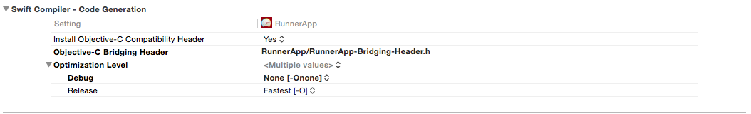 桥接标头不能包含在Compiled Sources部分中。通常,不应将头添加到Compiled Sources中。所以,去掉它,它就会起作用。