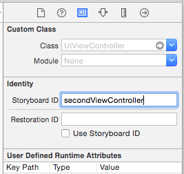 您可以将一个secondViewController.拖到您的故事板上,并且在身份检查器中将UIViewcontroller ID设置为见下图