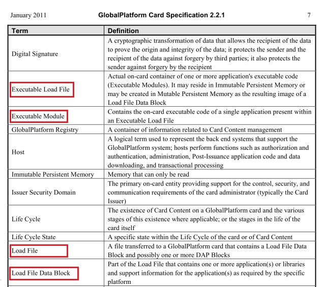 这是全局平台2.2.1卡规范第7页的一部分。我可以请你帮助我认识到这两个术语之间的不同吗?