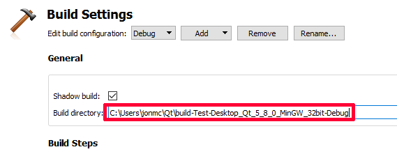 在Qt Creator上,进入"Projects Tab",然后您可以看到"Shadow build“。取消检查并编译。错误消失。