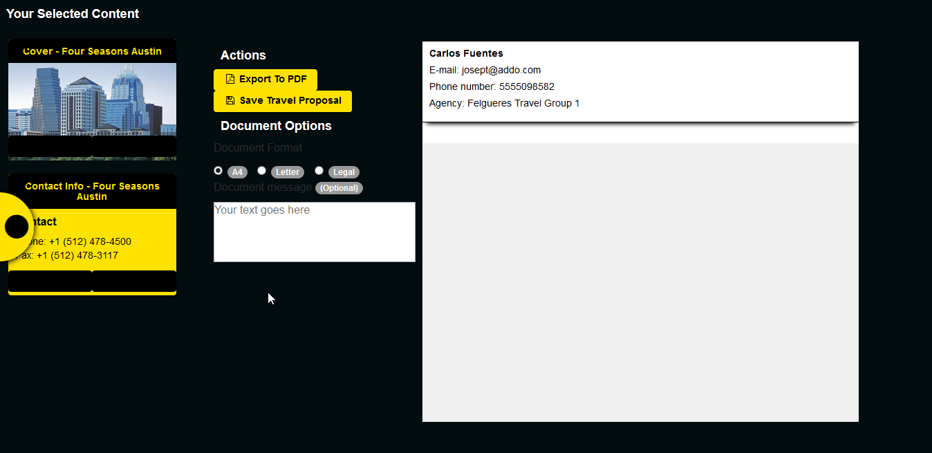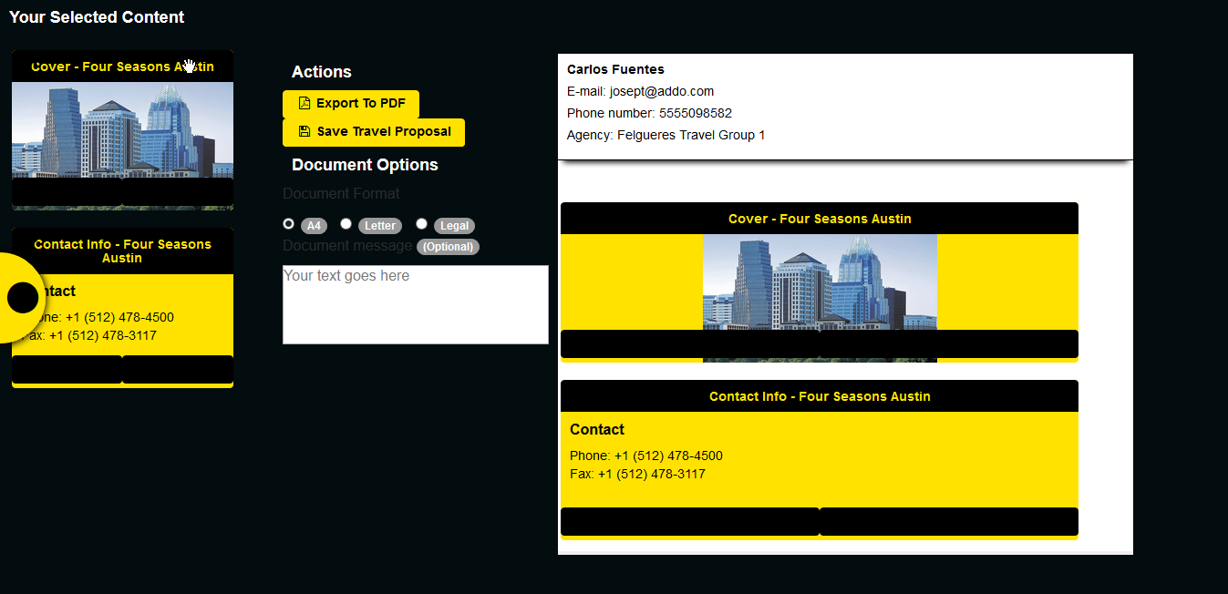 左边的列显示可以显示在文档上的选定内容。每个元素都有一个按钮(每个元素内的黑色区域),该按钮使用jQuery将整个元素克隆到文档容器(白色框)。一切正常工作,在将元素克隆到文档容器后,我使用Export按钮调用jQuery事件来使用jsPDF库并生成文档。但这是每件事都出错的地方。