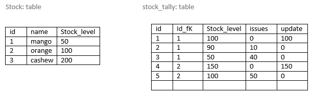 请帮助我的数据库设计或sql优化:我有两个表,股票和stock_tally。“库存”表包含项目列表,而stock_tally包含项目上的所有事务。