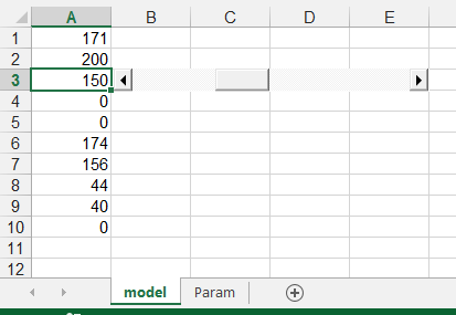 现在,您可以在单击model工作表中的单元格后享受滚动条。