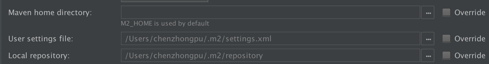 是的,您必须手动下载并安装Maven发行版。据我所知,IntelliJ不会自动这么做。至于"Maven主目录“字段,我的首选是显式选择安装Maven的目录,而不是设置全局"M2_HOME”环境变量。