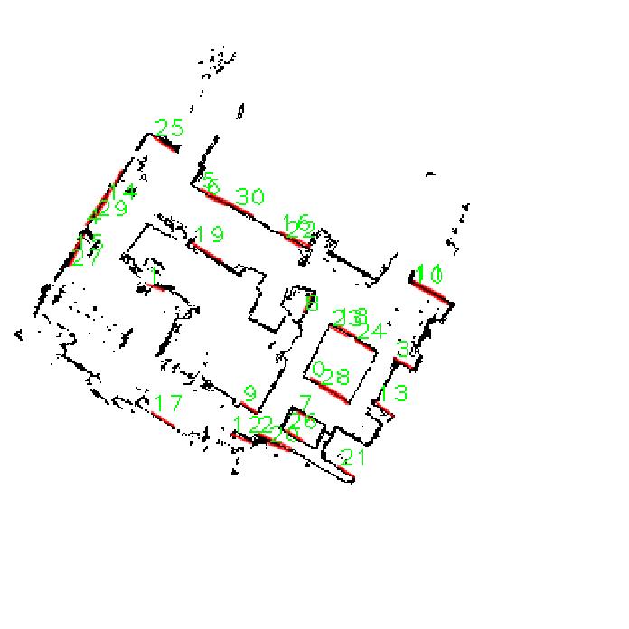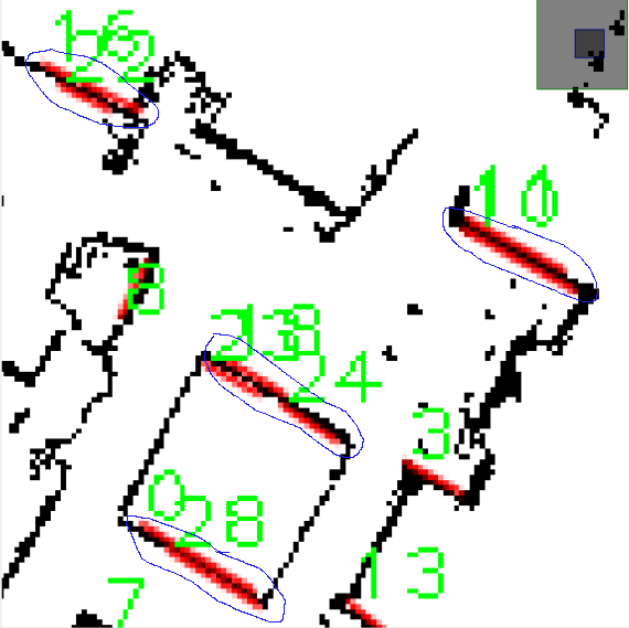 HoughLinesP(canny_img,tmp_lines, 1, CV_PI/360,10, 10, 1);从放大图像中可以看到,单边缘(即图像中的单行)正在返回多条线。16、22和0、28和10、11和23、18、24行对应单行。