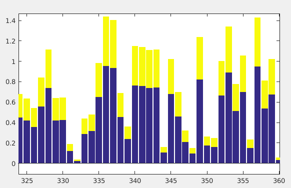 我有一个学生分数的矩阵数据(600x10),其中600是学生的数量,9列是不同的科目,第10列是他们的百分比,我想为每一列(1-9)和第(10)栏绘制标杆,以查看每个科目的平均分布情况。与条形图(1,10)相似,但由于X和Y的行向量中的值很大,即(600条目),所以barplot不像条形图,而是有单独条形的条形图,而不是中间有尖峰的彩色方形屏幕。我找不到任何功能,有单独的栏显示数据的分布,有什么想法吗?