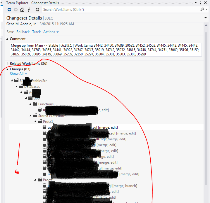 我有一个巨大的变化集,已经从主要的->稳定合并。现在我需要合并一些来自稳定的-> Main的更改,我想忽略这个变更集。但是,当我从命令行运行命令并弹出“签入源文件”窗口时,很明显,它认为需要合并的源文件并不反映我试图忽略的变更集中的文件(见附带的屏幕截图)。我从来没有遇到过这样的问题,而且有点困惑;我看到了处理合并/丢弃问题的问题,但这些问题大多与其他问题有关,比如处理部分更新之类的问题。以前有人参与过这个吗?