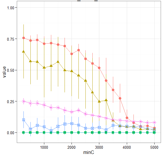 ggplot(dfc, aes(x=minC, y=value, ymax=1, colour=variable, group=variable)) +