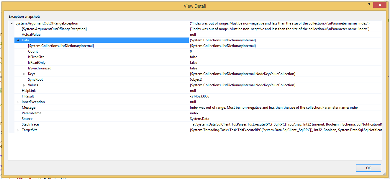 at System.Data.SqlClient.TdsParser.TdsExecuteRPC(_SqlRPC[] rpcArray, Int32 timeout, Boolean inSchema, SqlNotificationRequest notificationRequest, TdsParserStateObject stateObj, Boolean isCommandProc, Boolean sync, TaskCompletionSource`1 completion, Int32 startRpc, Int32 startParam)
