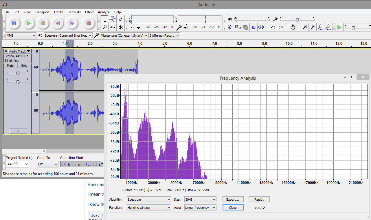 BASS_ChannelGetData(chan, fft, BASS_DATA_FFT2048); // get the FFT data这样,每次t的数组中就有1024个值。那个阵列中的值是信号振幅(dB),对吗?如果是,频率(Hz)是如何与这些值相关联的?根据指数?