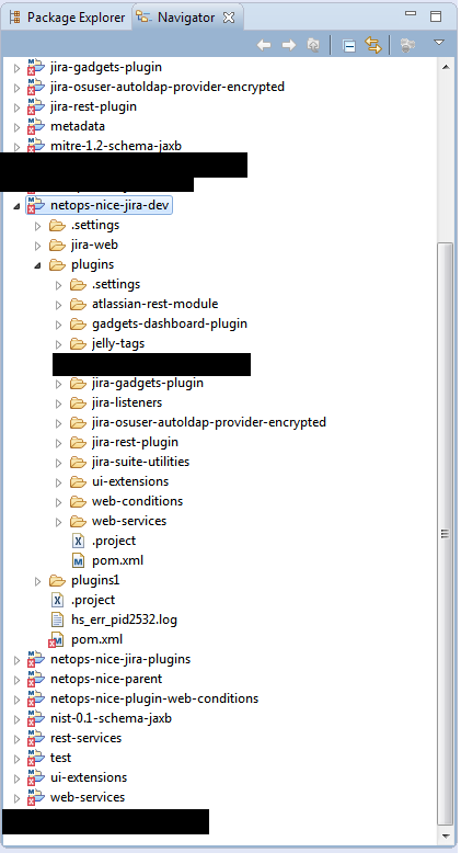 如图中所示,扩展文件夹netops-尼斯-jira-dev中的项目都与其他项目一样列在顶层。即ui扩展和web服务。rest服务也是一个项目,它驻留在web服务项目中。因此,如果我从一个位置打开一个文件,它允许与文件(如Ctrl Click )进行适当的交互,以跟踪方法,而从另一个位置打开该文件,它的作用就像一个纯文本文件,这让我很恼火。我不希望在我的视图中复制所有这些项目,我只希望显示主顶级项目,并使其简单地向下导航,而不是试图找到打开文件的适当位置。对于如何不显示项目中的所有项目,有什么建议吗?