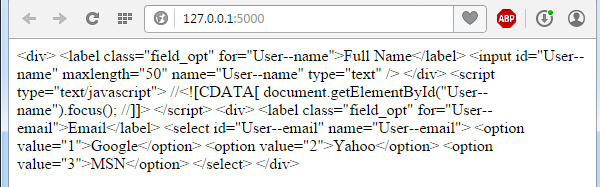 将form = FieldSet(User).render()传递给jinja2或mako呈现器后,应在页面中呈现自动生成的html表单,不包括标记。但是,模板变量${form}或{{ form }}没有呈现为表单。相反,它们是纯文本!!