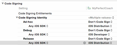 编辑:我还将我的项目和目标的代码签名构建设置更改为不要代码签名,并将其放到iOS分发 for ad和iOS Development for Debug。