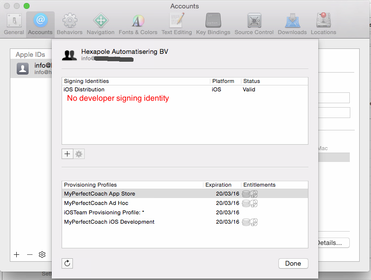 最后,结果是相同的;当我在Xcode > preferences > accounts >查看详细信息时: