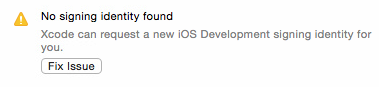 没有找到签名身份。Xcode可以为您请求一个新的iOS开发签名标识。