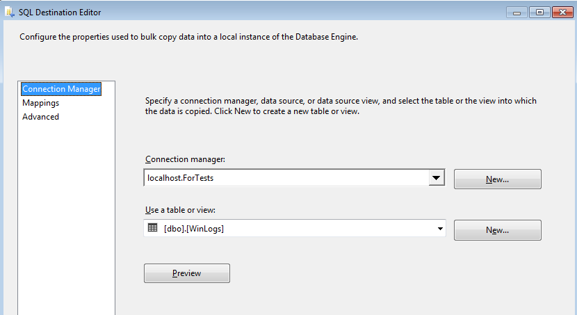 是否有任何方法将错误日志从事件查看器导入到SQL表并每天安排作业。我想使用powershell脚本或SSIS包。
