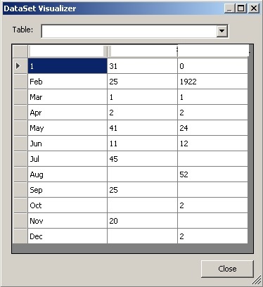 为了获得所需的数据集,我已经在表上转了转。在这个例子中,column1有几个月,rest列实际上来自数据库(所以不确定还会有多少列)。