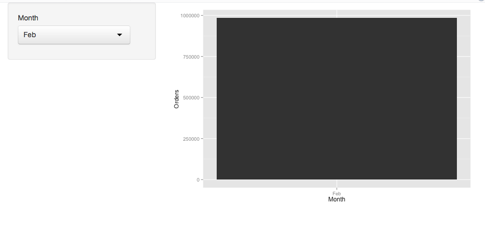 在我闪闪发亮的应用程序中,我想改变我想要构建的ggplot barChart。selectinput应该允许更改月份(见下面的数据集),因此我的绘图应该相应地更改。