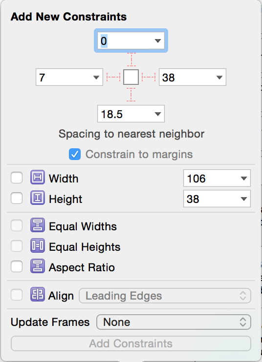 我有一个功能齐全的应用程序,我正在创建一个新的视图控制器在界面生成器与按钮和标签。我已经在Interface中列出了所有的内容,并使用AutoLayout来确保每个组件都已就位。它在iPhone 5s上工作得很好,但是使用iPhone 6和6 Plus,我的UIButtons没有调整它的高度以适应更大的屏幕。