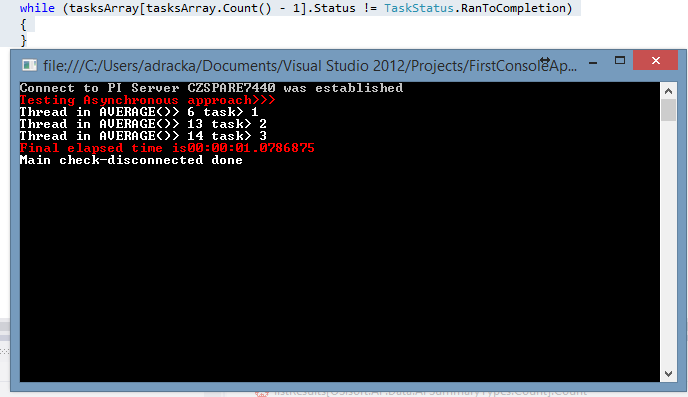 tasksArray[0] = (Task.Run(() => CalculationClass.AverageValueOfTagPerDay(server, timeRanges[0])));