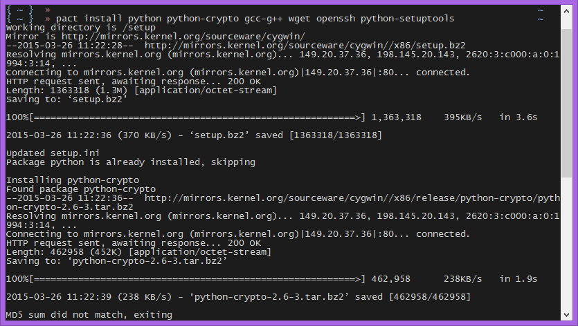 我试图在官方网站之后设置babun,但是当我试图安装一个软件包时,我经常会收到一个校验和错误。