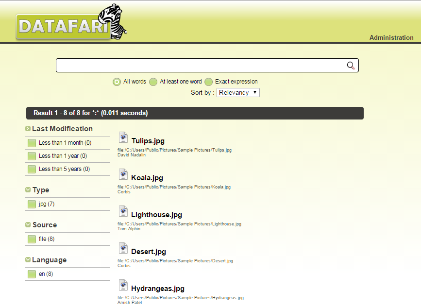 我正在寻找一个开放源码的文档管理系统,以索引所有类型的文件(文本: pdf,doc.,图片jpg,png,bmp.,视频mov,mp4.)我偶然发现了达塔法里
