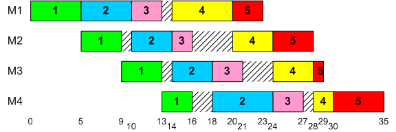machines[3].AddJobs(new int[] { 3, 6, 3, 2, 6 });