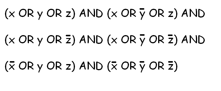 目标是:用不同的布尔变量,找出每个变量的做作,使“句子”成为真。(如果找到解决方案是可能的)。