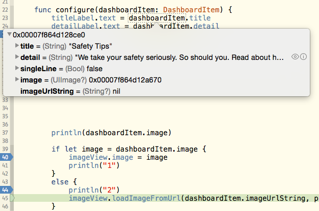 唯一误导您的是调试器工具提示,它还显示被检查对象的其他属性,甚至不限于来自DashboardItem协议类型的属性,包括image: UIImage?属性和来自对象的StaticDashboardItem真实类型的任何其他属性。