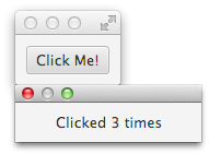 在此示例中,有一个阶段对核心进行更改(增加单击计数器)。另一个阶段有绑定到核心的元素(这样,当第一阶段更改了单击计数器时,第二阶段中的标签就会自动更新以反映新的单击计数值)。