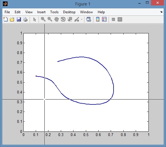 plot(x,y);axis([0 1 0 1]); % plot the curve
