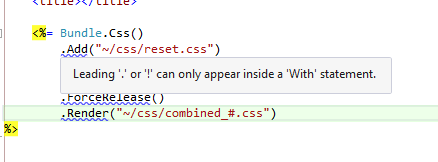 Bundle.Css().Add("something") ' and so on或显式分隔行: