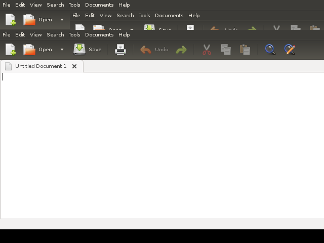 虽然Xephyr窗口会弹出,但使用:1显示的应用程序会显示出奇怪的故障。例如,DISPLAY=:1 gedit如下所示(当鼠标在窗口内移动时,输出会迅速变化):