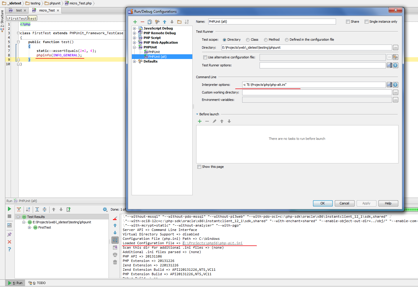 我试图为内置的Web和PHPUnit构建运行配置,但我无法确定如何指定php.ini文件的路径。