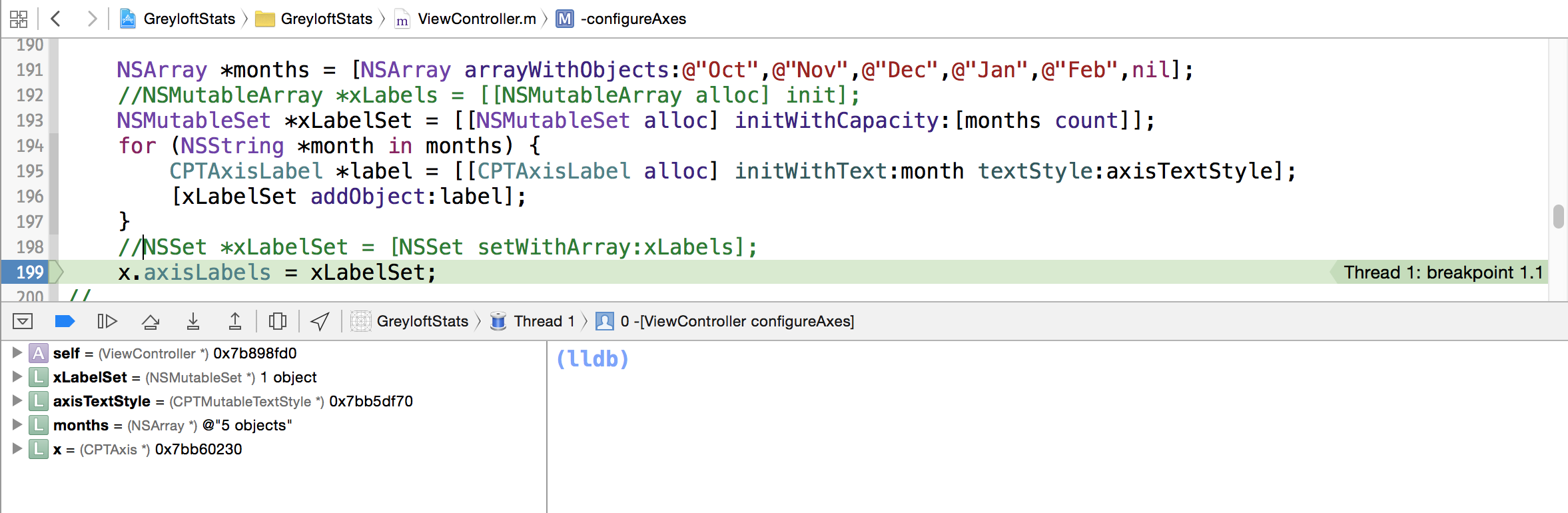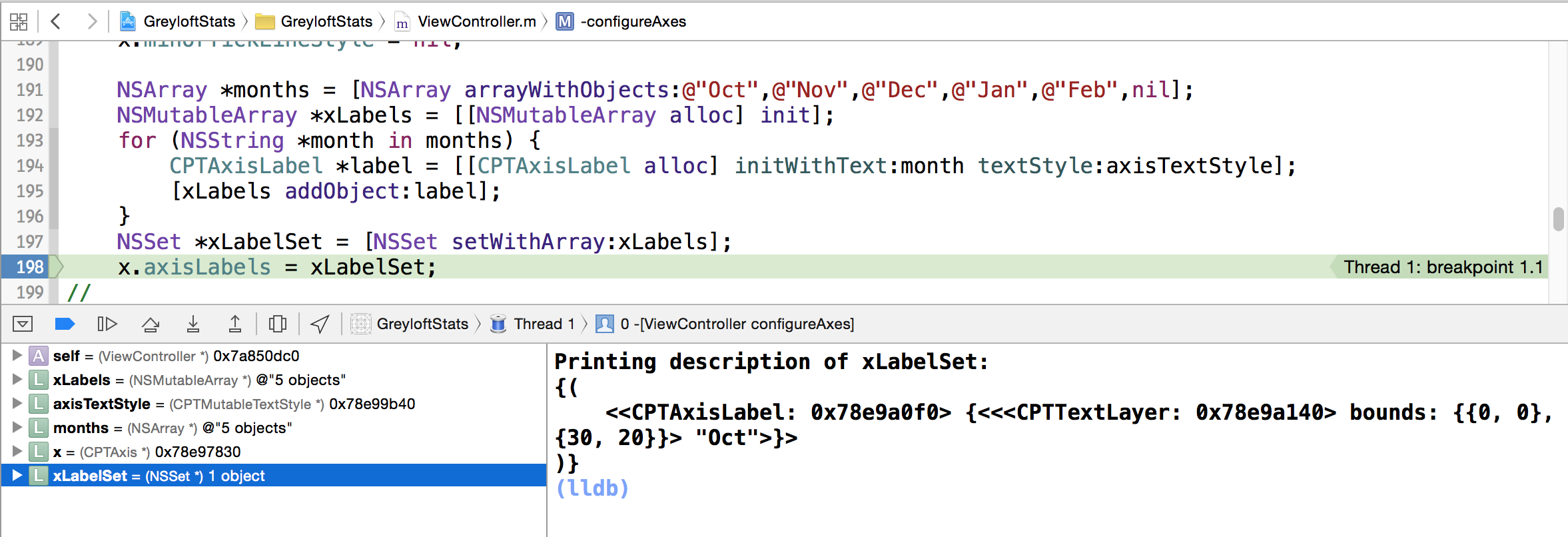 x.axisLabels = xLabelSet;图2-对象未被添加到NSMutableSet中