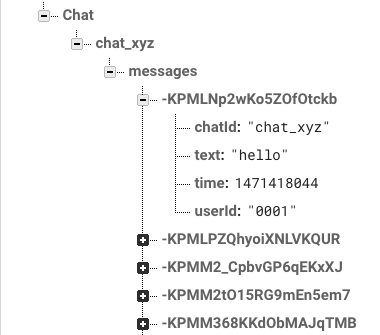 msgsReference // Firebase database messages node reference I'm also attaching the screenshot of my db structure for make you more clear