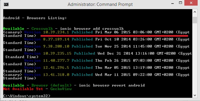 ionic browser list正如您所看到的,它在可用的版本中列出: