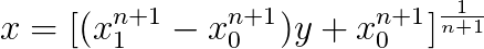 X= (x_1^{n+1}-(x_1^{n+1}-x_0^{n+1}) z^{1/(n+1)}