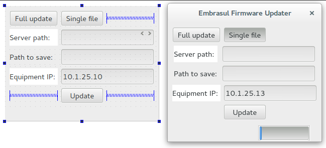这可能足以解释为什么Qt设计人员有时会以不同的方式显示事物。例如,在我的系统上,我使用停靠窗口接口模式,因此表单显示为MDI窗口。这意味着他们得到了与顶级窗口不同的窗口装饰(比如dimensions本身),因此它们的外部框架尺寸可能略有不同。