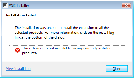 14-04-2015 18:38:22 - VSIXInstaller.NoApplicableSKUsException: This extension is not installable on any currently installed products.