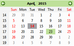 我有一个QCalendarWidget,一些月的日子是彩色的(例如假日是红色的)。当我选择一天是彩色的,选择清除颜色,我不能看到它的原始颜色。但当我取消选择那一天时,颜色又回来了。请看图片。
