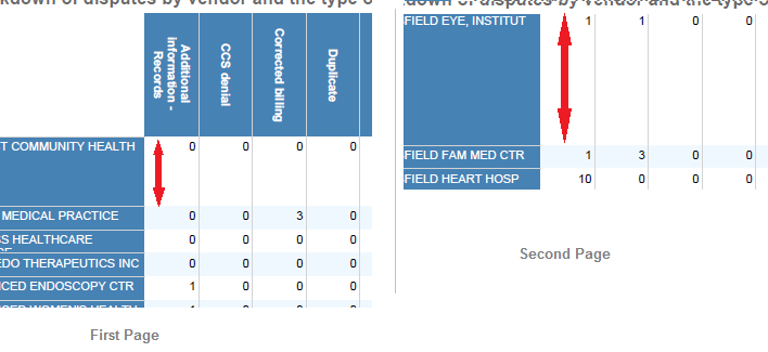 我创建了一份报告,其中包含了几个相关的表格和一些图表。它在Visual 中看起来很好,并且可以导出,但是当我部署到Report并导出到PDF时,头不会在后续的页面中显示,并且第一行被展开,就好像它是标题一样。此外,具有长名称的行不会按其应有的方式展开行。