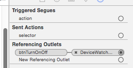 - (IBAction) btnTurnOnOffClicked ;WKInterfaceButton对象时,可以在实用程序面板中找到“已发送的操作”。