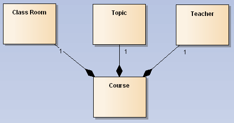 您是否使用Course和Teacher之间的简单关联或组合取决于您的域。所示的方法将修复它,只有当所有三个部分都被定义时,才会存在一个过程。使用一个简单的联想会告诉我们,一门课程实际上是存在的,并且可以由一位任性的老师进行。不过,话题/教室还是和老师联系在一起的。