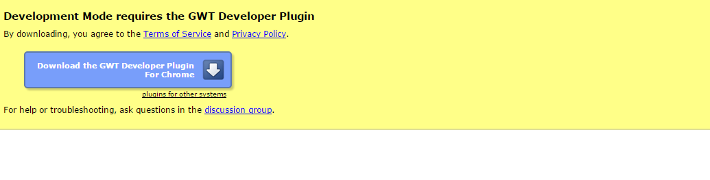 我的项目使用GWT。我以前为我的Chrome浏览器安装了GWT插件。我正在使用最新版本的chrome .When运行项目,Chrome浏览器也宣布