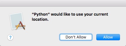 不幸的是,有时不可能通过系统首选项中的安全和隐私部分来控制访问。由于在Location列表中消失了python行,所以不能检查或取消选中。而且,tccutil shell命令无法控制这一点。