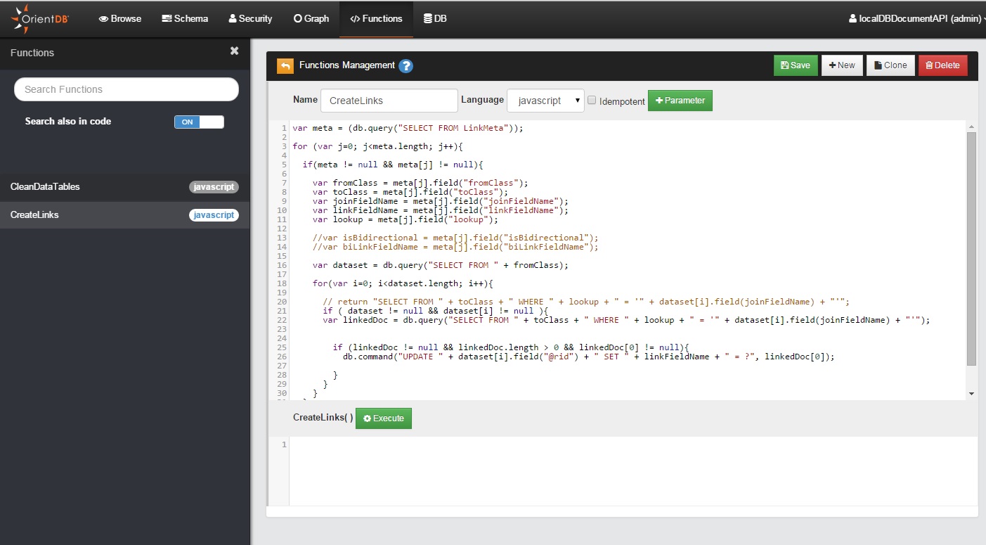 OFunction func = db.getMetadata().getFunctionLibrary().getFunction("CreateLinks");