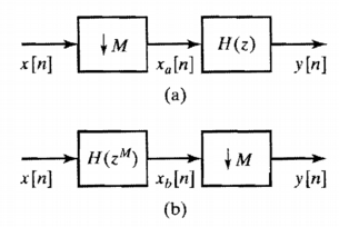 在证券交易委员会。4.7在经典教科书“离散时间信号处理(3)”中,对多速率处理的高效实现进行了深入的讨论。第一种方法是处理“滤波与压缩机/膨胀机的交换”,下图给出了下采样的交换图。
