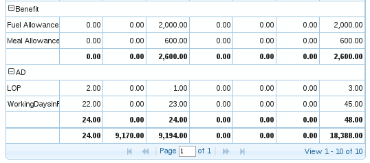 不应在底部的汇总栏(红色标记)中将工作日、LOP、福利行相加(因为它们不是必需的)。