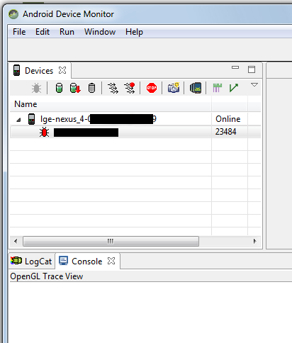 我正在尝试使用DDMS调试器连接到Nexus4设备上的进程。我构建了应用程序的调试版本,将android:debuggable="true"添加到清单中,并将android.os.Debug.waitForDebugger();添加到主MainActivity中。